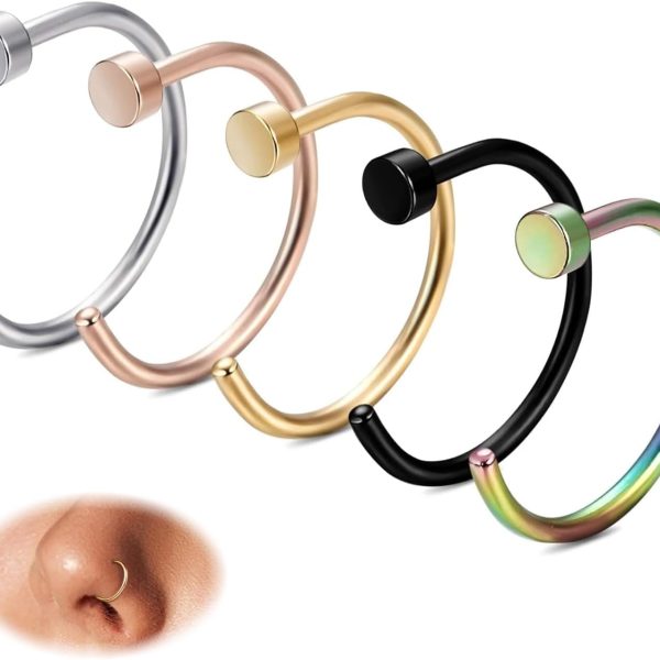 18G-22G 5PCS Stainless Steel Body Jewelry Piercing Nose Ring Hoop for Women