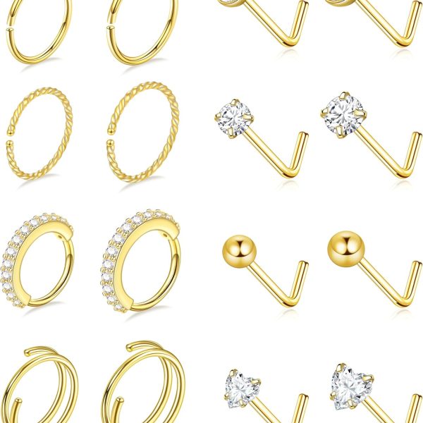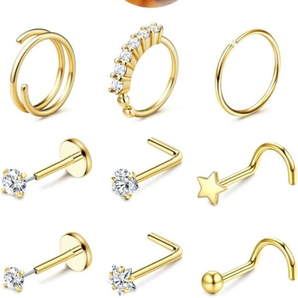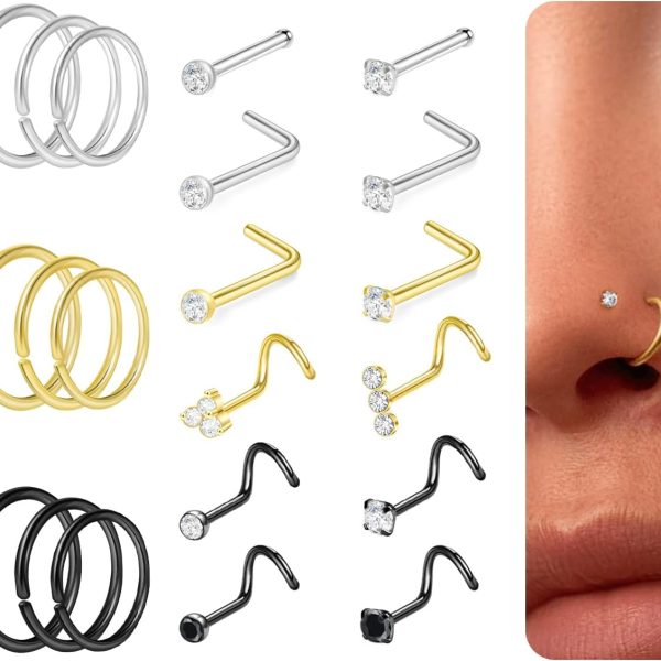 Nose Rings Hoops for Women Nose Studs Jewelry Piercings Surgical Stainless Steel Hypoallergenic