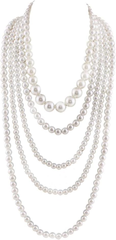 Multilayer Strand Chain Faux Pearls Flapper Beads Cluster Long Choker Necklace